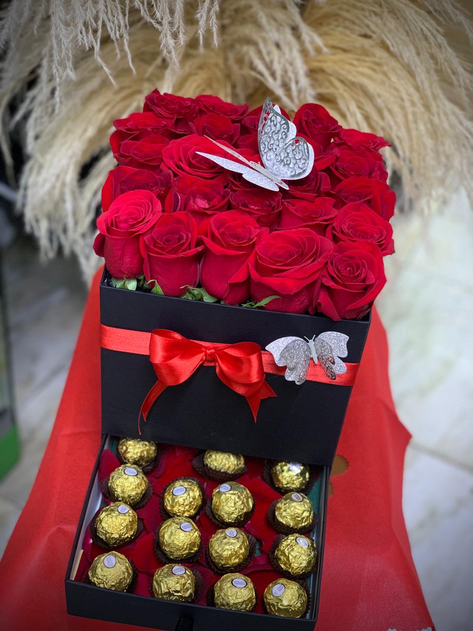 Descubre nuestra versátil colección de cajas decoradas, diseñadas para adaptarse a cualquier emoción y celebración. Podrás elegir entre la vibrante energía de nuestros arreglos de girasoles frescos, perfectos para iluminar el día y celebrar logros, o la elegancia clásica de una caja de rosas rojas premium combinada con la sofisticación de los chocolates Ferrero Rocher, ideal para citas románticas y aniversarios. Ambas opciones están presentadas en cajas rígidas de alta calidad que garantizan una impresión inolvidable. Incluyen una tarjeta de dedicatoria personalizada y están montadas sobre espuma floral hidratante para asegurar la máxima frescura y durabilidad de las flores.