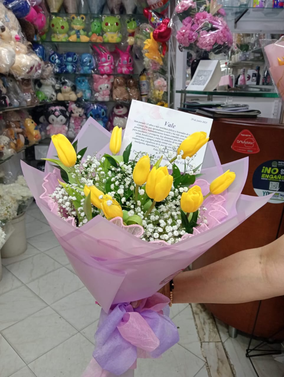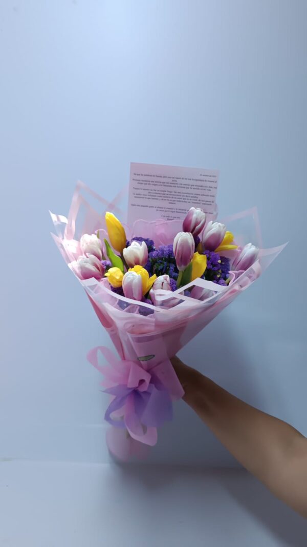 Eleva cualquier ocasión con la elegancia atemporal de nuestros ramos de tulipanes frescos. Seleccionados cuidadosamente por su firmeza y colores vibrantes, estos bouquets son la definición de sofisticación natural, ideales para expresar admiración, celebrar logros o simplemente regalar belleza pura. Cada ramo es diseñado a mano por nuestros floristas, combinando los tulipanes con follaje delicado para resaltar su forma única y estilizada. Presentados con un empaque elegante que protege su frescura, son el detalle perfecto para sorprender y decorar cualquier espacio. Además, incluyen una tarjeta de dedicatoria personalizada para transmitir tu mensaje con el mayor estilo.